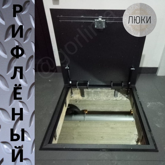Основа напольного люка в гараже – это рама из сварного металлического уголка, в зависимости от предполагаемой нагрузки подбирается уголок 50х50 мм или 63х63 мм. Крышка – на ребра жесткости устанавливается рифленый металлический лист (чечевица), толщиной 3 мм.