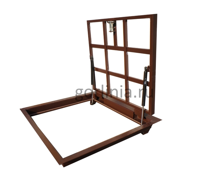 Облегченная модель без щелей в полу с уведенными за ось открывания петлями. Легкая ходовая часть и удобная установка. Просторный размер в свету 750*600 при поднятой крышке для удобного спуска по лестнице в подвальное помещение. При формировании посадочного отверстия обратите внимание, что защитные кожухи шарниров выходят за посадочную отметку по плечевой стороне (см фото).